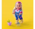• Evi en fermière - Avec ses bottes en caoutchouc jaunes et sa salopette, la fermière Evi est prête à travailler à la ferme. Elle est bien préparée avec une pelle et une fourche. Evi mesure 12 cm.