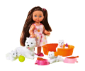Amie des animaux et aide-soignante vétérinaire, Evi soigne les animaux et leurs petits. Elle remplit l'écuelle d'aliments ou nourrit les petits au biberon. Elle joue avec les animaux avec une balle ou une pelote de laine. Convient aux enfants dès 3 ans. Disponible en 2 versions