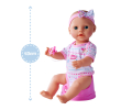 De 43 cm grote New Born Baby pop met drink- en plasfunctie wordt geleverd met tal van accessoires en maakt het voor de poppenmama bijzonder gemakkelijk om voor haar kleintje te zorgen. Naast het slabbetje, luier, bestek en flesje wordt ook het potje meegeleverd. De NBB pop kan water drinken en daarna het op het potje gaan. Geschikt voor kinderen vanaf 3 jaar.