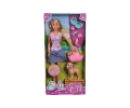 Steffi porte une robe à la mode avec une jolie patte et promène son chien, qui est récemment devenue mère. Vous pouvez transporter le petit chiot dans un sac de transport rose et l'emmener avec vous sur la route. L'ensemble comprend également de superbes accessoires pour chiens. La marche pour chiots Steffi LOVE 29 cm de Simba Toys convient aux enfants à partir de trois ans.