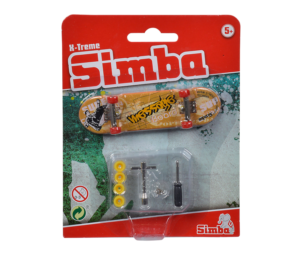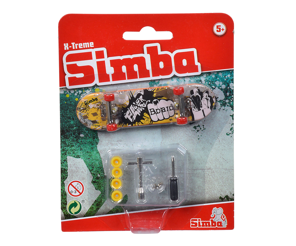 Simba Fingerboards pour les enfants à partir de 5 ans. Un jouet amusant pour les enfants qui utilisent leurs doigts pour essayer différentes astuces de skateboard. À l'intérieur ou à l'extérieur, ils jouent pendant des heures et travaillent sur leurs trucs fous tout comme leur patineur professionnel préféré. Le Mini Skateboard est disponible en 6 modèles différents avecdu grip, un petit tournevis et des roues. Le skateboard de 9 cm est un excellent cadeau pour les vrais passionnés du skateboard !