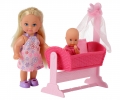 De lieftallige Evi als babysitter voedt de kleine babypop met de fles. In de poppenwieg wiegt Evi de kleine baby in slaap. De 12-delige set bezorgt veel speelplezier en leert je kind zorg dragen voor anderen. Geschikt voor kinderen vanaf 3 jaar. Verkrijgbaar in 2 verschillende versies.