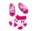 NBB schoenen en sokken: de sokken met leuk motif passen perfect bij de in bijpassende kleur schoenen. Geschikt voor 38-43 cm New Born Babypoppen. Verkrijgbaar in 4 verschillende versies. Geschikt voor kinderen vanaf 3 jaar