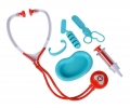 Optie 1: dokterskoffer met transparant deksel, stethoscoop, spuit, bakje, tongspatel, schaar en tandhouder.