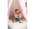 Het ABC assortiment wekt de nieuwsgierigheid van baby's en peuters van 0-36 maanden op en ondersteunt hun ontwikkeling in de eerste levensjaren. Op een speelse manier worden de eerste leerdoelen bereikt, worden vormen en structuren ontdekt en worden coördinatiepatronen getraind. De activiteitendriehoek uit het ABC assortiment van Simba kan van alle kanten worden bespeeld en biedt tal van functies: 1ste zijde: dierenspel, 2de zijde: geheugenspel met cijfers, letters en dieren om te draaien, 3de zijde: spiegel met een schattig onderwatermotief op de achterkant. In het multifunctionele speelgoed zit een motorische lus om de motoriek van de kinderen te trainen. Er zijn ook ratelballen in twee kolommen die geweldige geluiden maken bij het draaien van de driehoek. De kleurrijke ABC-activiteitendriehoek is 20 cm groot en is aanbevolen voor kinderen vanaf 12 maanden.
