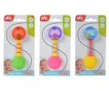 ABC First Rattle: De eerste rammelaar van ABC is perfect ontworpen voor kleine babyhandjes en kan gemakkelijk worden vastgegrepen en ermee gespeeld. De twee ballen bevatten kleine bellen en maken geweldige ratelende geluiden die baby's aanmoedigen om aan de rammelaar te schudden. Voor baby's geschikt vanaf 3 maanden. Komt in 2 verschillende versies.